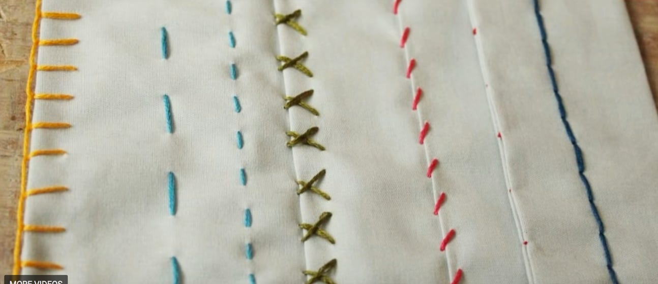 Hand sewing is part of the whole process of machine sewing. There are times when you will want to hand sew. Watch these 2 videos and let’s try some of the stitches.