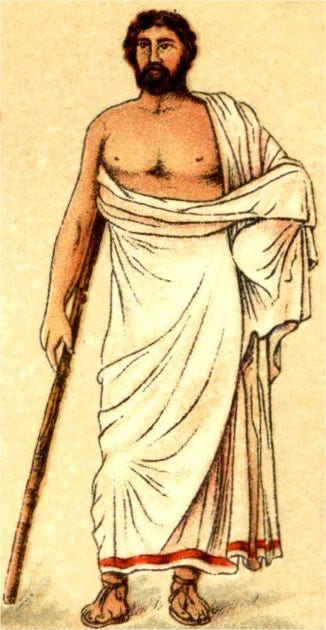 This project requires no sewing because in ancient Greece the clothing was not sewn, it was draped. Pins, clips and knots were used to keep things attached and the garments were of a simple nature. Just perfect for us as we begin our quest to learn about costuming.