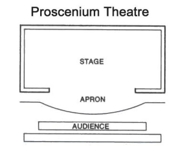 The apron is any part of the stage that extends past the proscenium arch and into the audience or seating area.