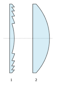 A Fresnel lens is a type of compact lens originally developed by French physicist Augustin-Jean Fresnel for lighthouses. The design allows the construction of lenses of large aperture and short focal length without the mass and volume of material that would be required by a lens of conventional design. Wikipedia